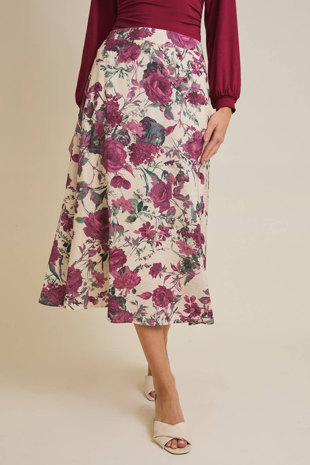Elizabeth Taylor FLARE HEM FLORAL MIDI SKIRT