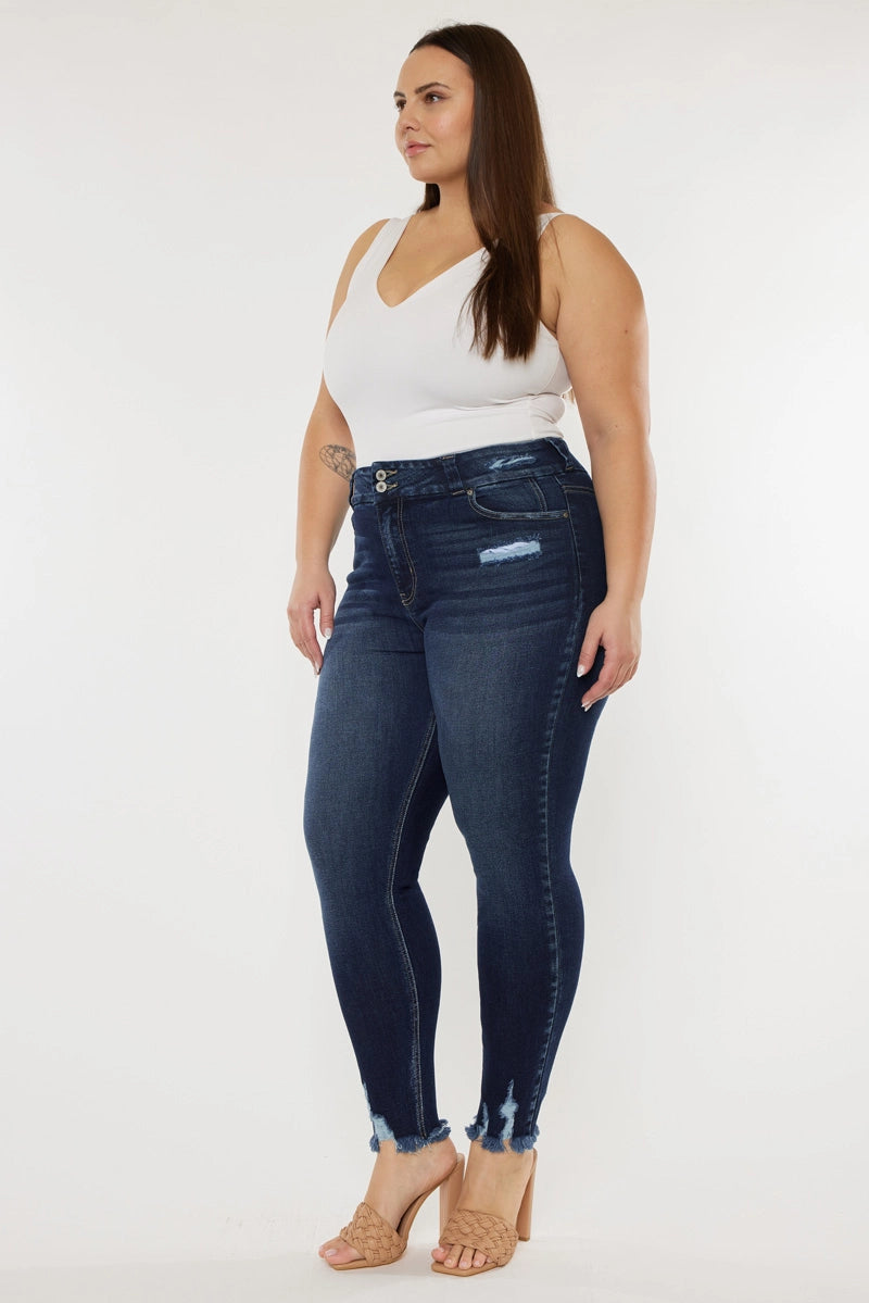 Our Miami High Rise Ankle Skinny Jeans come in our signature ankle skinny cut featuring light distress and destruction at its raw hem along with a gently faded wash that gives this style a subtle, worn-in look. Sits above the natural waistline as it tapers down the leg finishing right at the ankle for a more casual look. Made with soft, stretch denim that's flexible and durable. Features a classic five-pocket design, single-button front, and zip-fly closure.