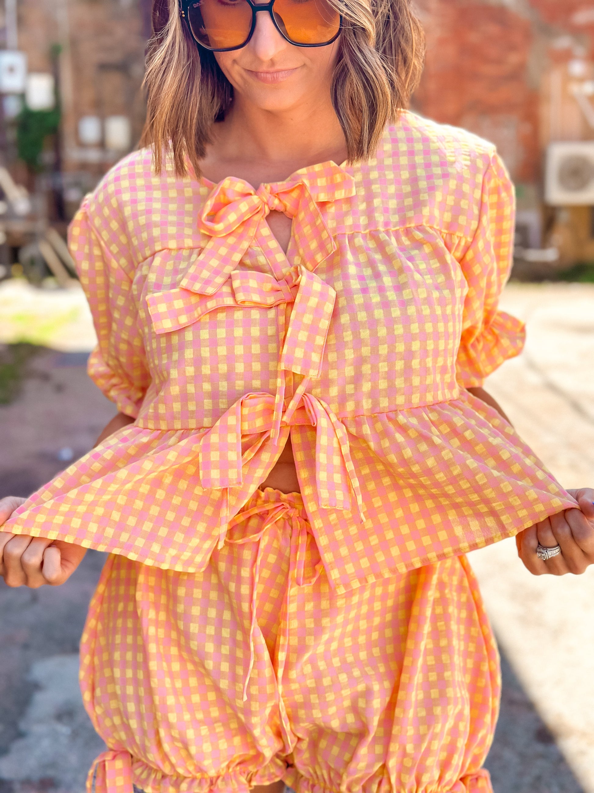 Get ready to rock out in this gingham seersucker set, perfect for concerts, summertime fun, and casual beach vibes. Stay comfy and stylish all day long with this versatile outfit! (P.S. no need to worry about those pesky wrinkles)